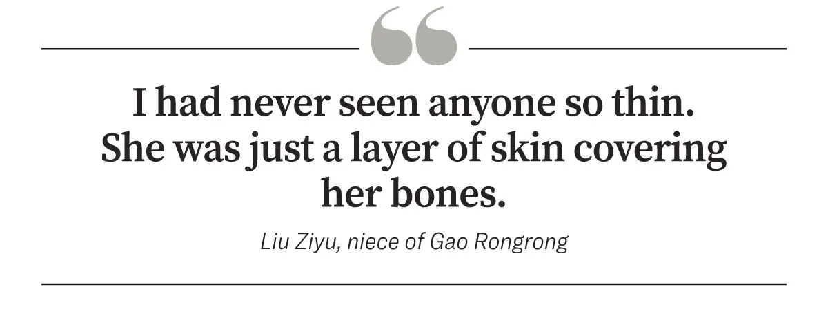 Gao’s niece Liu Ziyu, who was 16 at the time, remembers walking into the hospital room in August that year. Police officers were on guard inside and outside the ward.