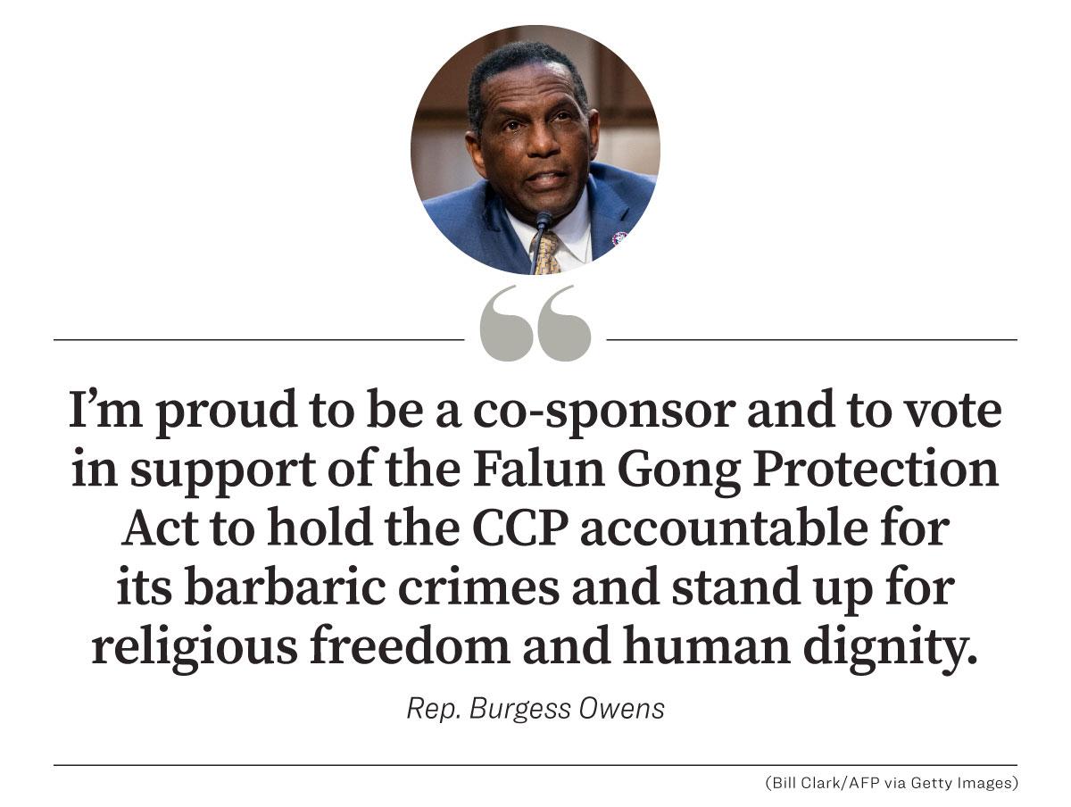 Rep. Burgess Owens (R-Utah) called the human rights abuses targeting the faith group “horrific and truly evil.”