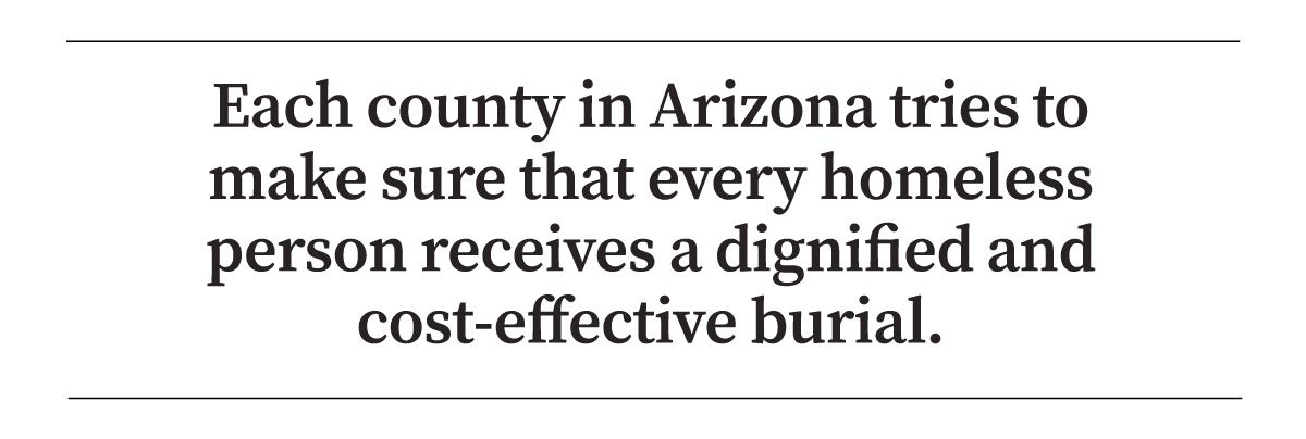 In Arizona, every county tries to work within financial limits to ensure that every homeless person receives a dignified and cost-effective burial.