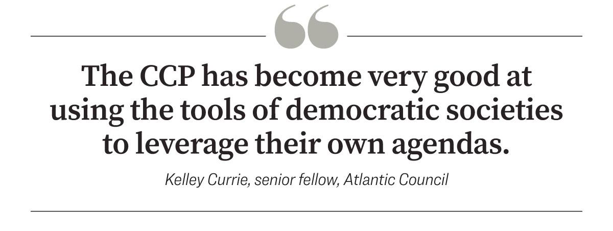 Kelley Currie, a senior fellow at the Atlantic Council and former U.S. deputy ambassador to the United Nations, said the CCP’s use of key functions in Western systems doesn’t surprise her.