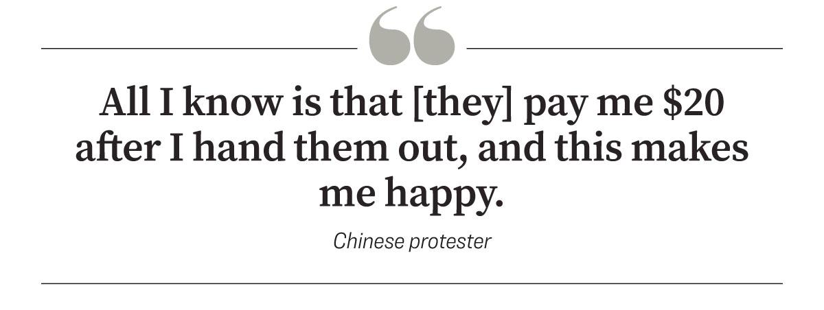 “All I know is that [they] pay me $20 after I hand them out, and this makes me happy.”