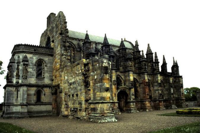 Roslin or Rosslyn Chapel, founded in the early 15th century. The Holy Grail is said to be buried here. (Ronnie Leask via Wikimedia Commons)