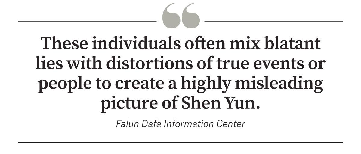 “Seeming to hold a grudge toward Shen Yun, these individuals often mix blatant lies with distortions of true events or people to create a highly misleading picture of Shen Yun,” the FDIC report states.
