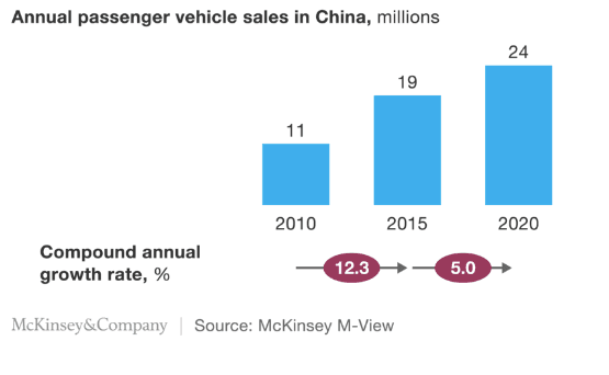 “Changing consumer attitudes and macroeconomic headwinds are slowing growth in China’s vehicle market. From 2010 to 2015, vehicle sales in China increased by more than 12 percent a year. Looking out to 2020, however, we project that the vehicle market will grow by an average of 5 percent a year,” stated the McKinsey report.