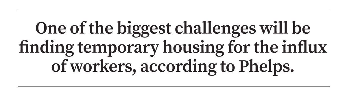 One of the biggest challenges will be finding temporary housing for the influx of workers, according to Phelps. “We’re just waiting and seeing. Obviously, infrastructure must be established before any work can begin.”