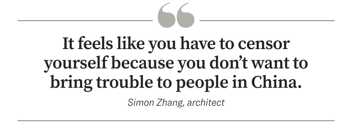 “It feels like you have to censor yourself because you don’t want to bring trouble to people in China,” he said.