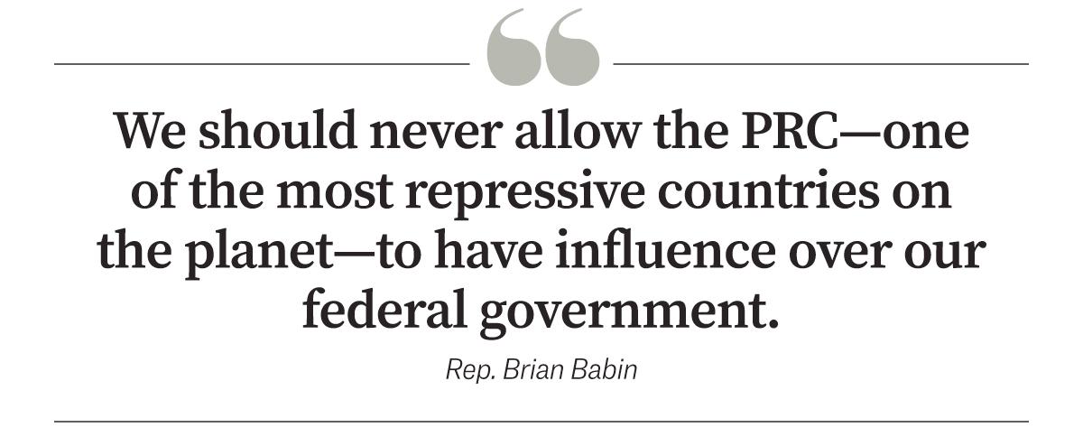 “We should never allow the PRC—one of the most repressive countries on the planet—to have influence over our federal government,” he said, using the acronym for the People’s Republic of China.