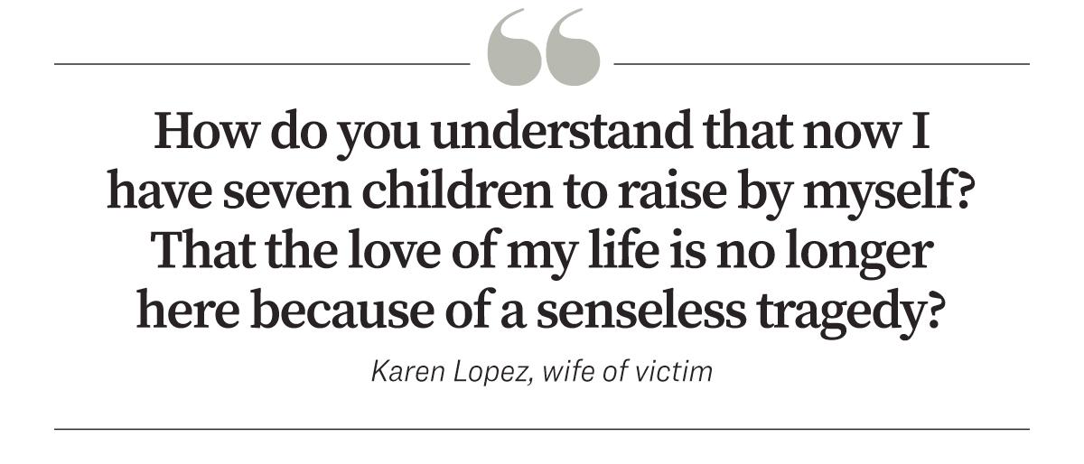 “How do you comprehend that my husband was murdered? How do you understand that now I have seven children to raise by myself? That the love of my life is no longer here because of a senseless tragedy?
