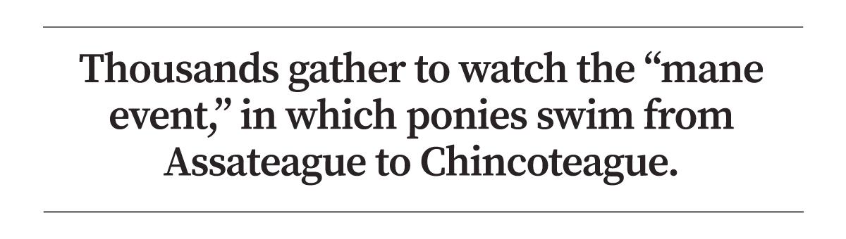 What comes on the Wednesday of Pony Penning Week is considered the “mane event”—the pony swim from Assateague to Chincoteague.