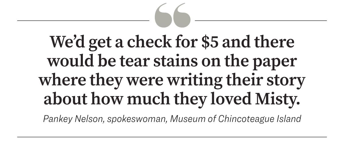 “We’d get a check for $5, and there would be tear stains on the paper where they were writing their story about how much they loved Misty or how much they loved the island,” Nelson said. “Just so many touching, touching stories.”