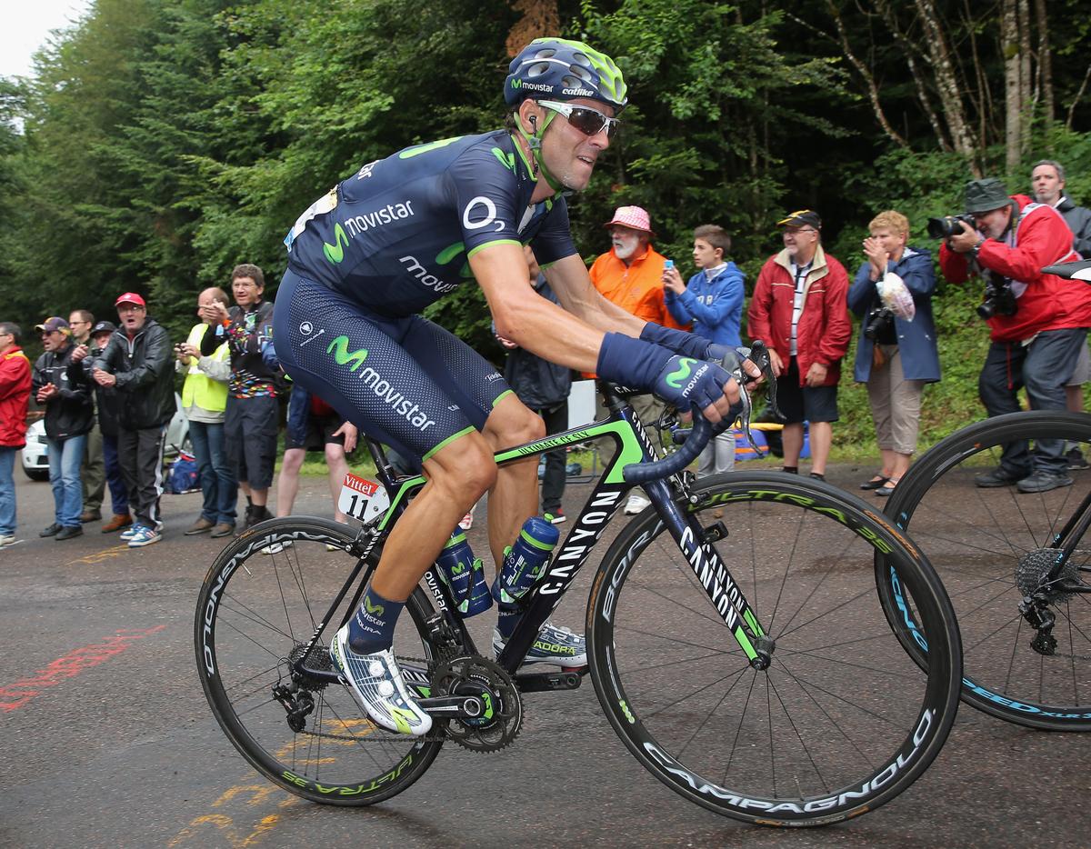 Alejandro Valverde of Movistar climbs the Col des Chevreres during Stage Ten as he moved into third place overall in the 2014 Le Tour de France, July 14, 2014 in La Planche des Belles Filles, France. (Doug Pensinger/Getty Images)