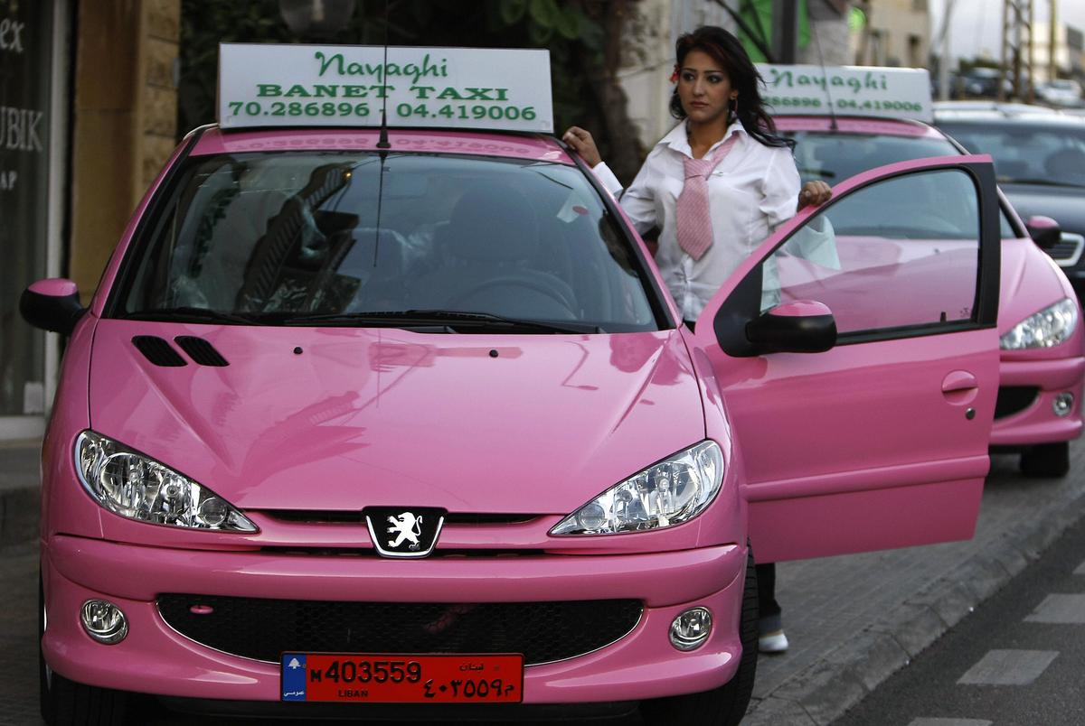 A Lebanese woman taxi driver stands by her car outside the office of ‘Banet Taxi’ (Girls Taxi) in Mtaileb, northeast of Beirut, on March 10, 2009. (Ramzi Haidar/AFP/Getty Images)