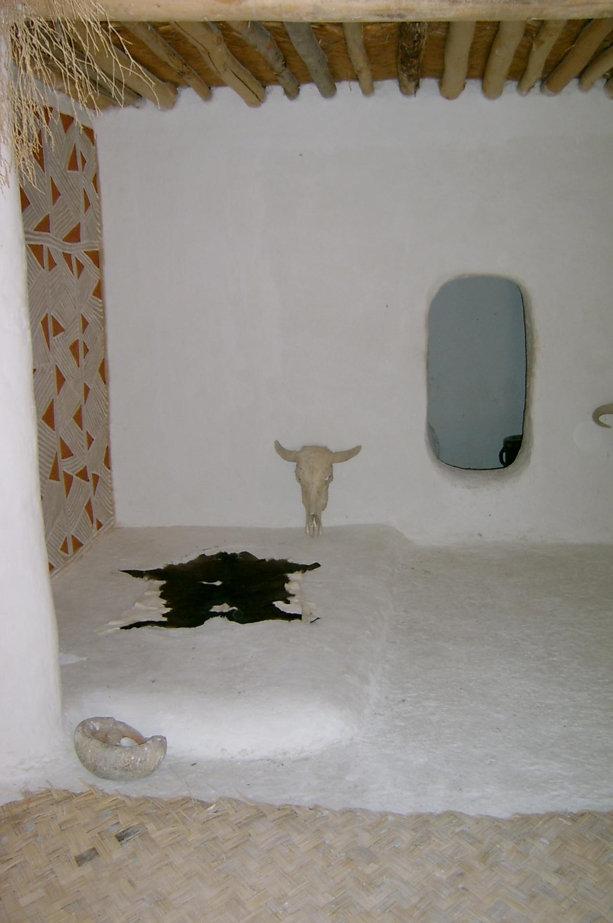 Perhaps one of the most bizarre features of the houses is the fact that many of them contained bodies buried in pits under the floor and beneath hearths and platforms. Skeletons were buried in a fetal position, many under raised platforms, which the archaeologists believe were covered with reed mats and used as beds.