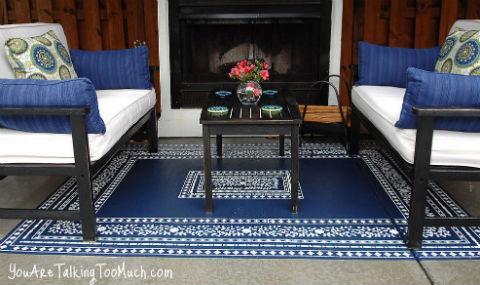 Stenciled Rug on Concrete via Hometalker You Are Talking Too Much