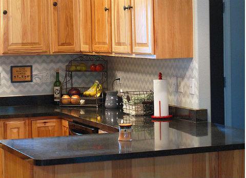 Chevron Stenciled Backsplash via Hometalker Pressing On
