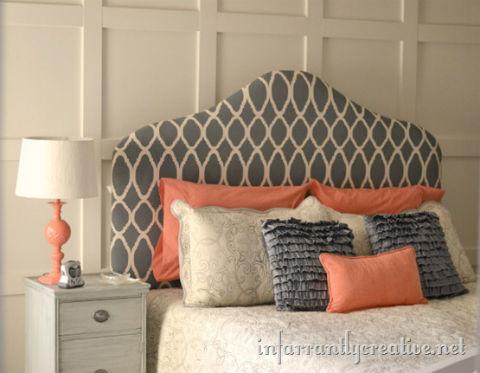 Painted Fabric Stenciled Headboard via Hometalker Infarrantly Creative