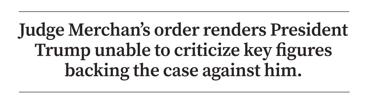 Yet Judge Merchan’s order renders President Trump unable to criticize key figures backing the case against him, including Mr. Colangelo, who played roles in past Trump-related legal matters.