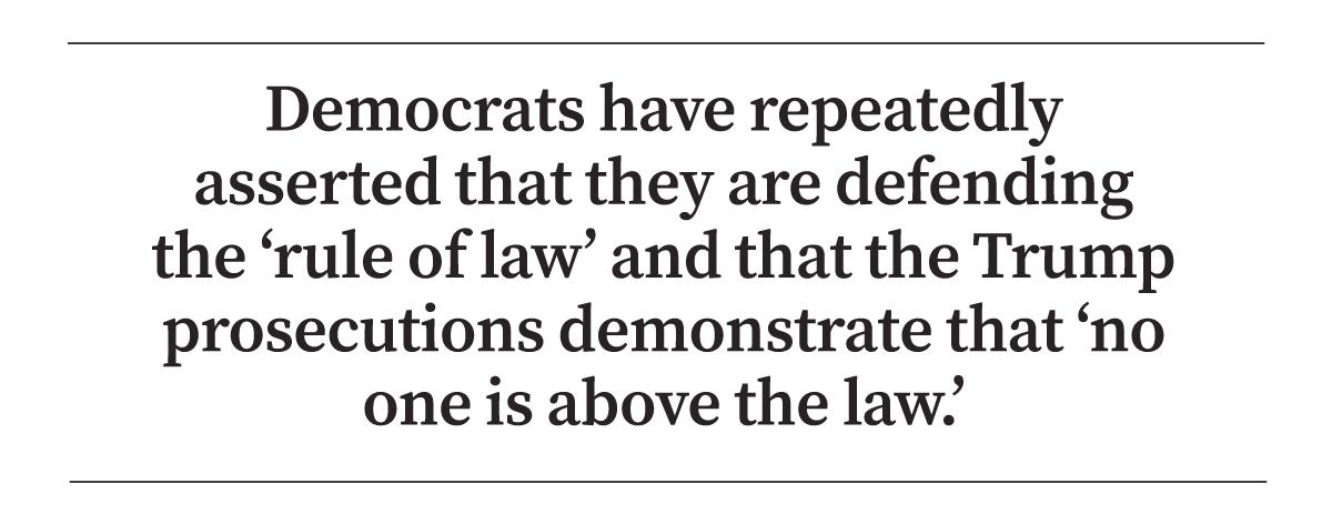 Democrats have repeatedly asserted that they are defending the “rule of law” and that the Trump prosecutions demonstrate that “no one is above the law.”
