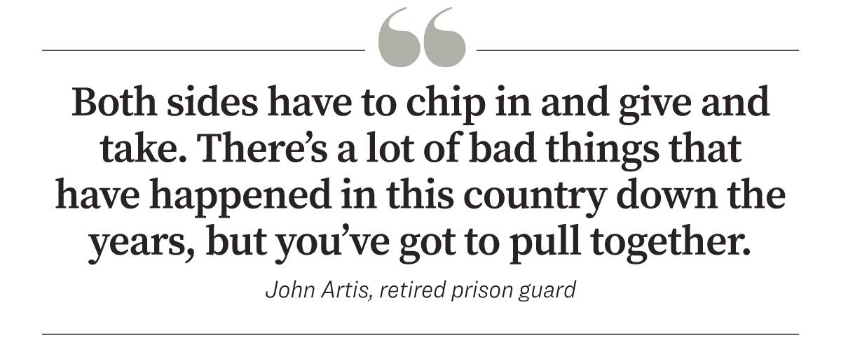 “Both sides have to chip in and give and take. There’s a lot of bad things that have happened in this country down the years, but you’ve got to pull together.”