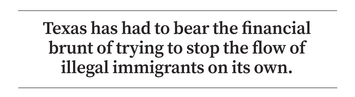 Texas has had to bear the financial brunt of trying to stop the flow of illegal immigrants on its own, budgeting billions of dollars for securing the border, which has included installing shipping containers and razor wire at border hotspots.