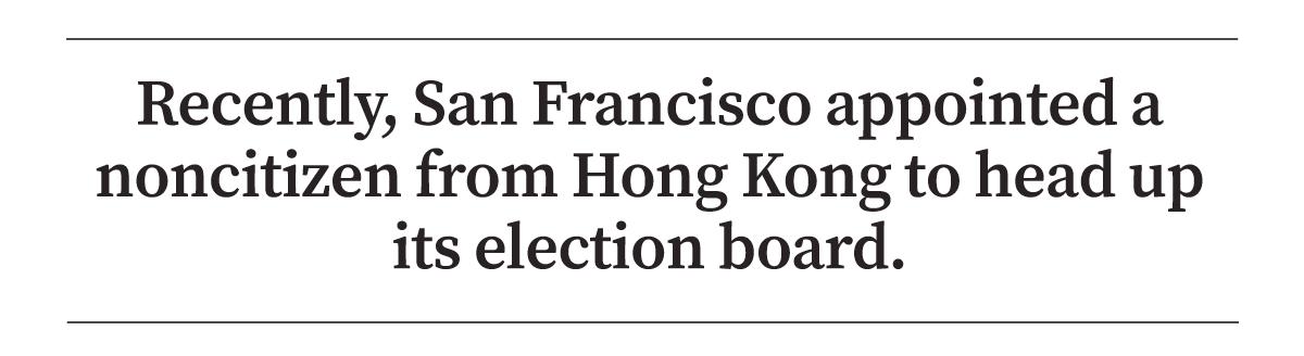 Recently, San Francisco appointed a noncitizen from Hong Kong to head up its election board.