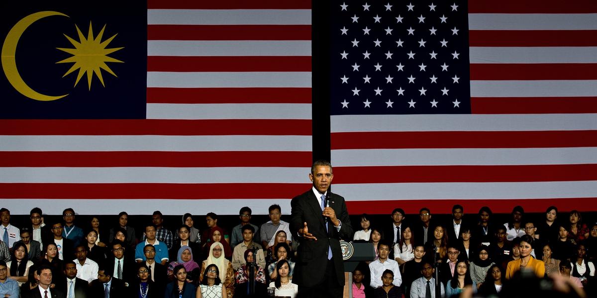 U.S. President Barack Obama answers questions from young student leaders at the Young Southeast Asian Leadership Initiative (YSEALI) Town Hall during a visit to University of Malaya in Kuala Lumpur on April 27. (Manan Vatsyayana/AFP/Getty Images)