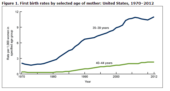 One of the main reasons in the West for the drop in birth rates is the steady rise of the age of first births. New data from the Center for Disease Control paints a dramatic picture: Women are starting to have babies much later in life.