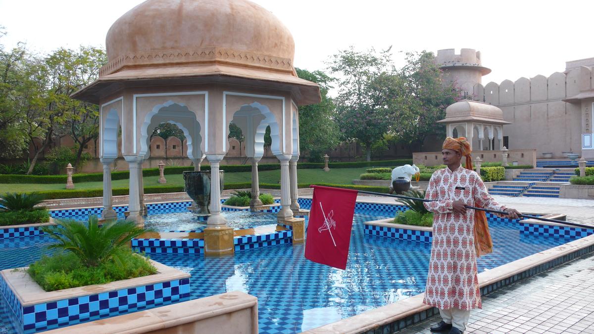 In Rajasthan, India the exquisite 5-star Rambagh Palace in Jaipur, employs two people as flag wavers to keep the pigeons away from the hotel’s courtyard fountain. Amusingly, the flags carry the image of a crossed out bird—presumably to inform the guests, not sure if it works for the pigeons.