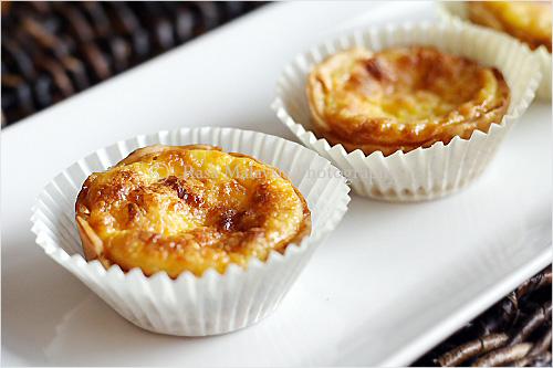 These tarts have an outer pastry crust, which is filled with an egg mixture.