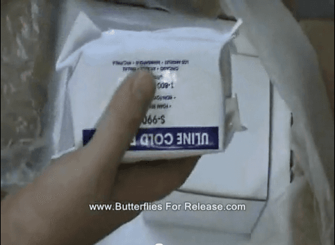 Monarch butterflies are put into hibernation, then packed for shipping to be released at an event. (YouTube Screenshot/ButterfliesForRelease.com)