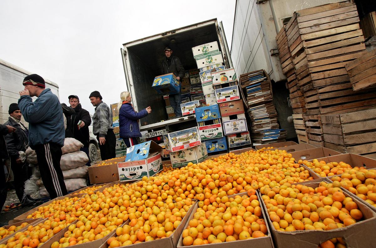 - Russian mandarin second-hand dealers at a market on the Russian-Abkhazian border outside the Russian town of Sochi on Dec. 19, 2006. (Denis Sinyakov/AFP/Getty Images)
