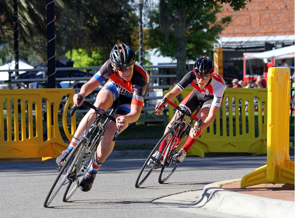 Sunday the show moved to the park in Downtown Winter Haven for ten races around the three-quarter-mile, eight-turn criterium course. Unlike the common four-corner course, the Winter Haven race offers left-and right-hand corners of varying widths, requiring different strategies.