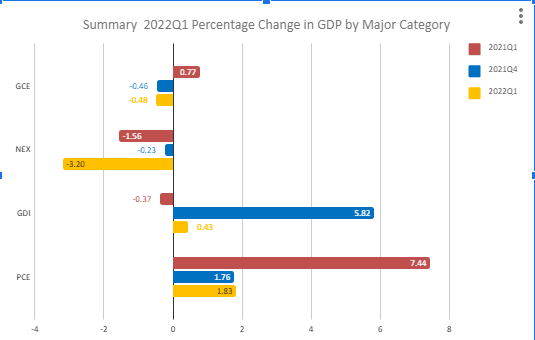- Topline GDP printed down 1.4 percent versus a consensus estimate of 1.1 percent up.