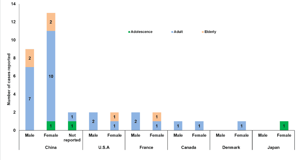 There were 36 eligible cases from six ethnic groups and six countries, with 17 percent (n= 6) of the patients being older people over 70. Eight percent (n=3) of the reported cases were medical professionals.