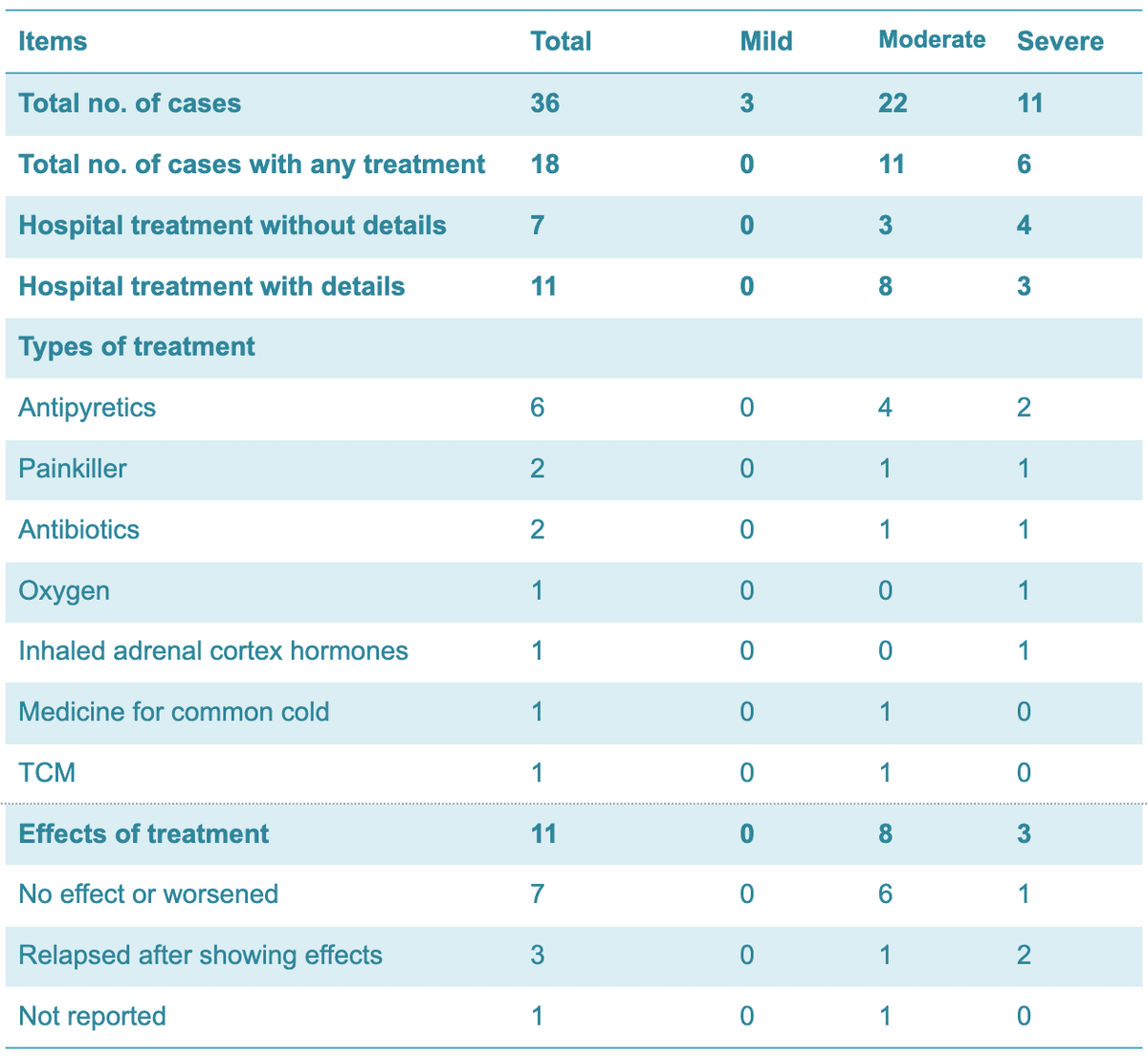 Of these 36 cases, over 47 percent (n=17) received hospital treatment or medication. But the treatments were either ineffective or initially effective and followed by a rapid relapse or worsening of symptoms.