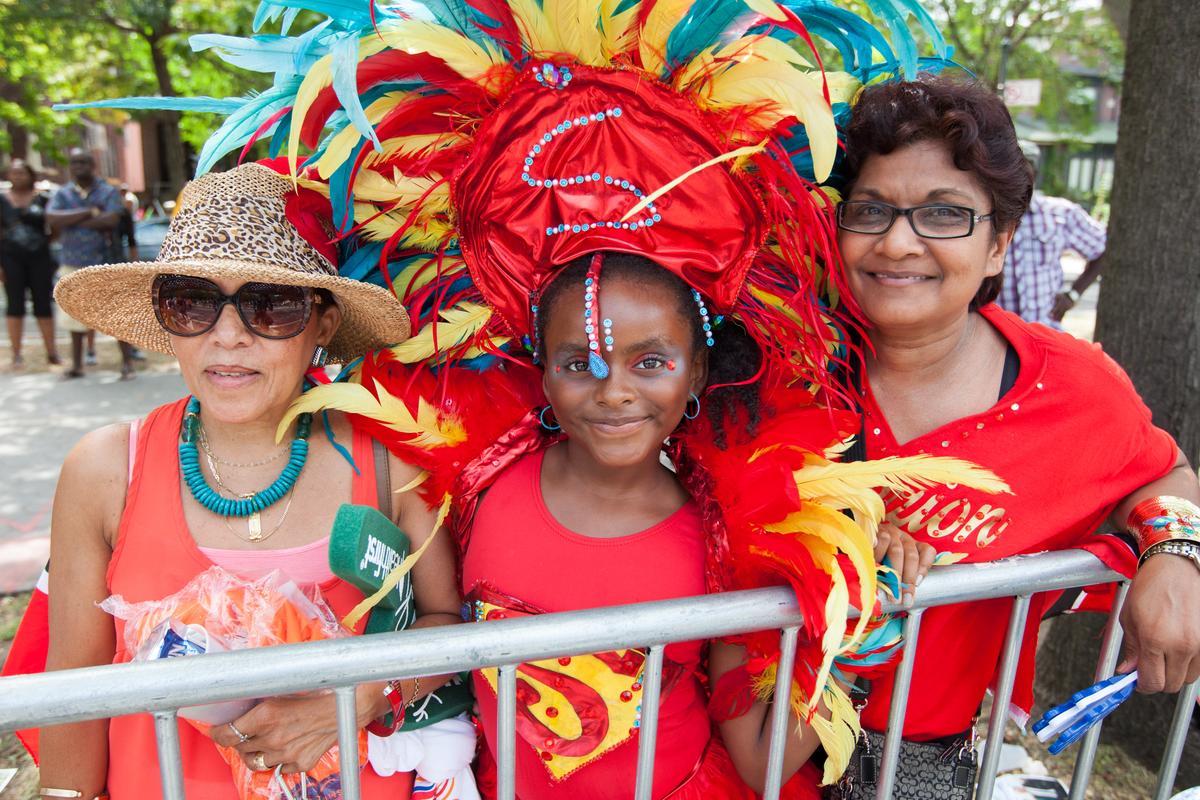 Helen Brathwaite (L) with her granddaughter Anjali Brathwaite and another family member at the West Indian Day Carnival Parade along Eastern Parkway in Brooklyn, New York, Sept. 1, 2014. (Petr Svab/Epoch Times)