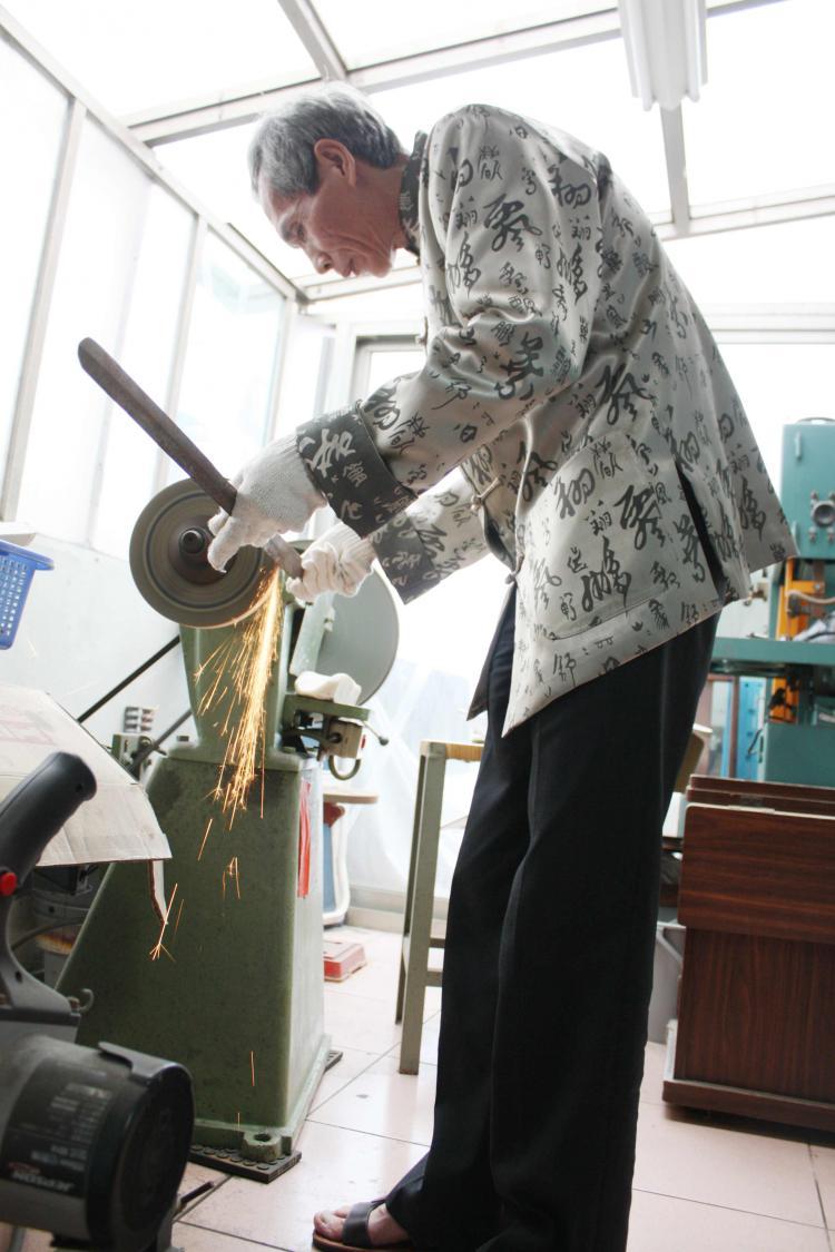 Chen is in the process of teaching his sons how to grind swords, and it sits on their shoulders to carry on the tradition.