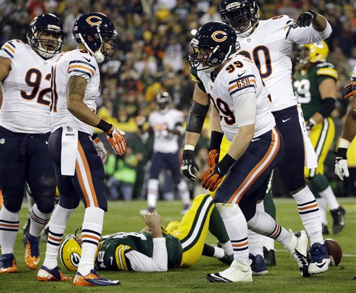 The Chicago Bears’ Shea McClellin sacked Rodgers and he was seen on his back for a while before he got off the field.
