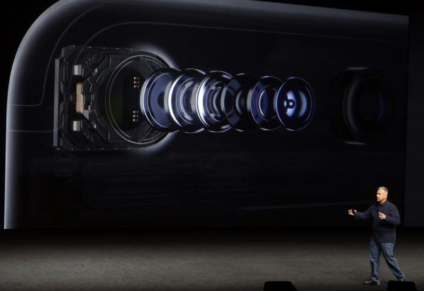 Phil Schiller, Apple’s senior vice president of worldwide marketing, talks about the features on the new iPhone 7 during an event to announce new products Wednesday, Sept. 7, 2016, in San Francisco. (AP Photo/Marcio Jose Sanchez)