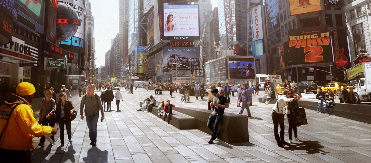 In 2009, the city sought to solve the pedestrian gridlock problem of Times Square.