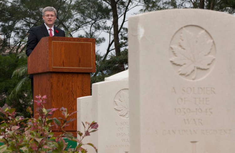 Speaking at the Sai Wan Bay Cemetery in Hong Kong where nearly 300 Canadian soldiers who died while taking part in a mission during WWII are buried, Prime Minister Stephen Harper honoured the service of all Canadian soldiers and those who made the ultimate sacrifice.