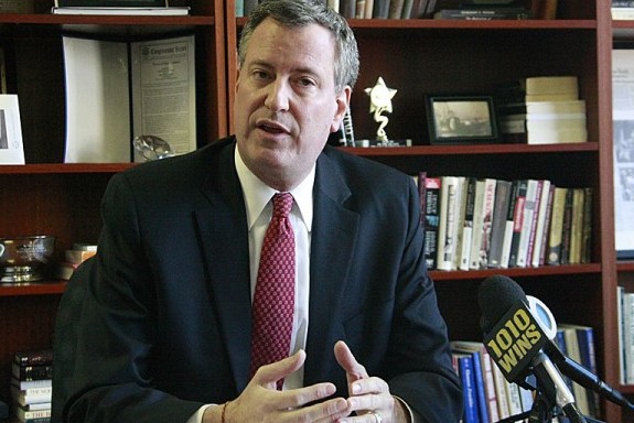 Public Advocate Bill de Blasio delivers his six-point plan to improve CTE schools in New York City. Aric Chen/The Epoch Times