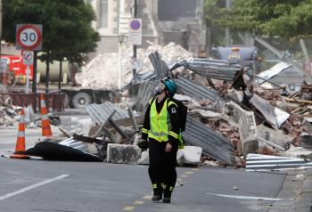 A New Zealand Urban Search and Rescue worker walks through the central business district on March 2, 2011 in Christchurch, New Zealand. Mark Baker-Pool/Getty Images