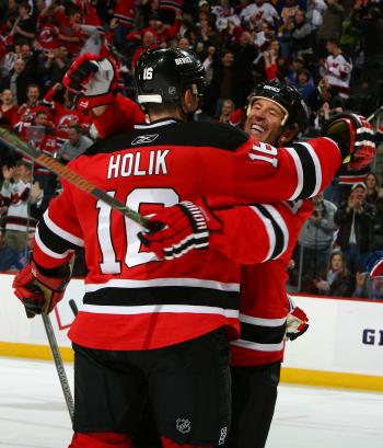 With about eight minutes left in the second period, two former Rangers hooked up as Bobby Holik, assisted by newly acquired Brendan Shanahan, sat in front of the Rangers net and quickly shot the puck through the legs of Rangers netminder Henrik Lundqvist.