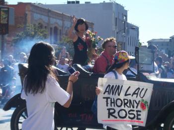 Ann Lau, Chair of Visual Artists Guild, was selected as the 2009 “Thorny Rose” recipient for her outspoken criticism of China’s human rights record and her tenacious prodding of Pasadena’s city council to take a public stand against China’s abuses before last year’s Rose Parade, which honored the Beijing Olympics.