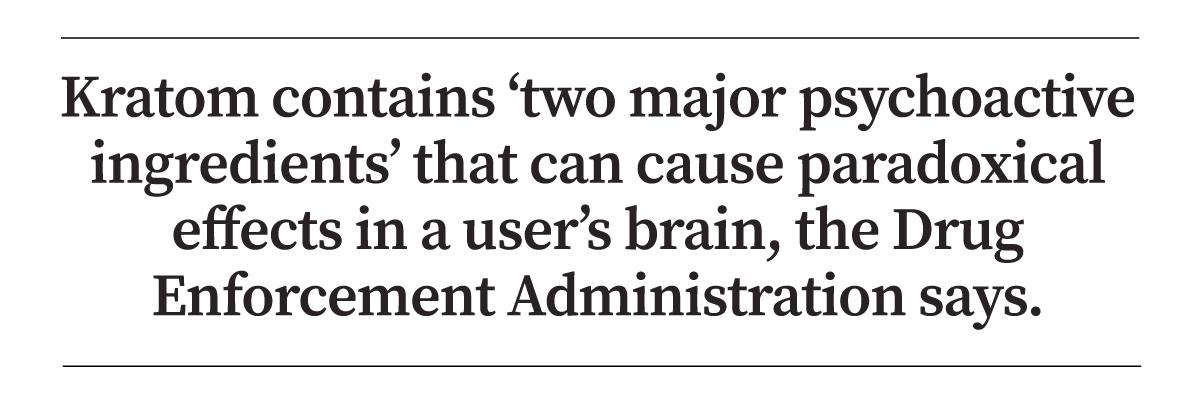Kratom is a botanical enigma; researchers don’t quite understand it.At low doses, kratom acts as a stimulant; at higher doses, it becomes a sedative, the DEA said, and it also can cause “psychotic symptoms, and psychological and physiological dependence.”