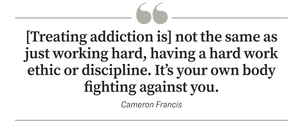 “It’s not the same as just working hard, having a hard work ethic or discipline,” Cameron Francis said. “It’s your own body fighting against you. ... And willpower is not something that can help you fight it.”