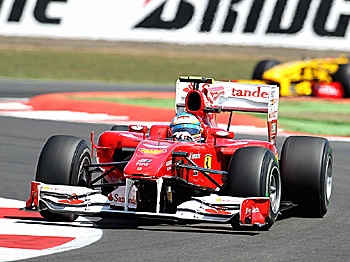 Ferrari's Fernando Alonso drives away from Renault's Robert Kubica during lap 17 of the British Formula One Grand Prix. (Malcolm Griffiths/Getty Images)