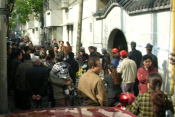 The conflict was triggered on the afternoon of April 9 in the Baijingfang, Xiacheng district when staff members of the Hangzhou Urban Management Bureau (also known as chengguan) came to remove posters and banners which had been publicly posted by local residents in protest of forced relocation.