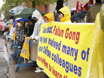 CHICAGO—Adherents of the spiritual practice Falun Gong have at great risk to themselves carried on an unprecedented civil disobedience campaign in China for 11 years. On Sunday, Falun Gong practitioners gathered for a rally in a steady rain opposite the Chinese Consulate in Chicago to mark the eleventh anniversary of the first such act of civil disobedience, staged by tens of thousands of practitioners in Beijing on April 25, 1999. Three veterans of that day spoke and gave a glimpse into why Falun Gong practitioners acted as they did 11 years ago and continue doing so today.